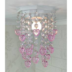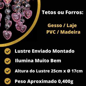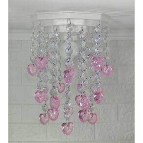 Os pingentes em formato de coração na cor rosa são o destaque desse lustre, trazendo delicadeza e encanto ao quarto da sua menina. Com uma altura de 25cm, o lustre se adapta facilmente a qualquer espaço.