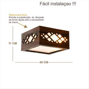 Especificações técnicas Dimensões: Comprimento: 40 cm Largura: 40 cm Altura: 11 cm Peso: 3,0 kg Qtde de lâmpadas: 3 led 6 a 15 w Alimentação: bivolt 110/220