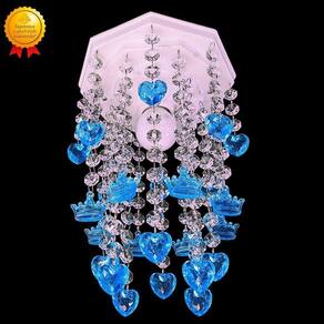 As castanhas de acrílico transparente adicionam um toque de sofisticação ao lustre, criando um efeito de brilho e elegância. Já os pingentes em formato de coroas e corações de acrílico na cor azul trazem um charme especial para a decoração, encantando a todos que entram no quarto.
