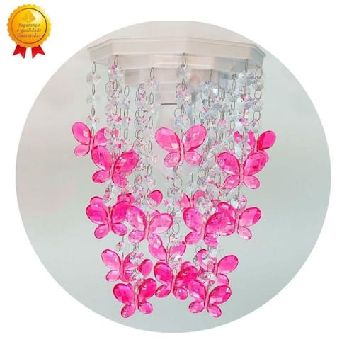 Lustre infantil plafon pingentes de acrílico cor rosa borboletas Design Moderno, Ideal para Decoração de Quarto de Crianças, Bebê, Ilumina Muito Bem e Realça o Ambiente. Lindo Lustre Para o Quarto da Sua Princesa Lindo lustre infantil menina de cristal em acrílico de alto brilho e argolas de inox (não enferrujam). Design moderno, ideal para decoração de quarto de crianças, bebê, ilumina muito bem e realça o ambiente. - Base plafon octogonal de 17 cm em acrílico na cor branca. - Castanhas de acrílico transparente. - Borboletas de acrílico cor rosa. - Altura do lustre 25 cm. - Voltagem: bivolt 127v 220v - Lustre enviado montado pronto para instalação. Lâmpada não inclusa. Marca: Lustres Sh Design