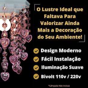 Transforme o quarto do seu bebê em um ambiente encantador com a Luminária com Pingente de Corações. Garanta já o seu e deixe o espaço ainda mais especial! Marca: Lustres Sh Design Ean: 7806025050630