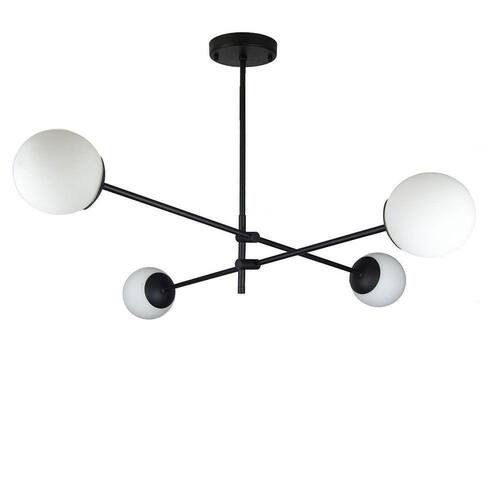 Lustre Lirio Com 4 Globos Esfera De Vidro Branco - Preto A luminária modelo LIRIO tem um ar contemporâneo, um estilo moderno, minimalista e ao mesmo tempo uma sensação retrô. O lustre pode ser colocado em quartos, salas de jantar ou estar e as arandelas indicamos para lounges, salas, dormitórios ou até mesmo em lavabos. Com Design simples trazem classe e estilo a qualquer ambiente. Descrição Técnica: - Modelo: Lustre Lirio - Acabamento: Pintura a pó térmica - Tamanho dos Globos de Vidro: 120mm - Quantidade de Globos de Vidro e soquetes: 4 - Material: Globo em Vidro e Hastes em Alumínio - Tamanho Aproximado (LxA) com os Globos de Vidro: 82 cm x 45 cm - Soquete: Padrão G9 - Bivolt: Sim ****