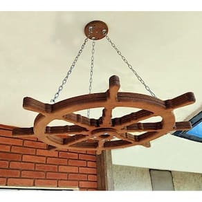 Lustre luminária pendente 65cm leme de navio rústico 1b :-:-:-:-:-:-:-:-:-:-:-:-:-:luminária leme ou timão de navio rustico:-:-:-:-:-:-:-:-:-:-:-:-:-: Crie inove e encante A nossa linha de moveis não para de crescer e agora traz para você, esta linda peça para organizar diversos ambientes da casa.Afinal existem coisas que nunca saem de moda, que tal esse lindo lustre para deixar seu ambiente ainda mais charmoso Um charme né.Esta peça com certeza vai deixar a sua casa mais bonitaLindo para decorar em cima de uma mesa de jantar, hall de entrada área de churrasco, ambientes como áreas de garagem, garagens com bar, chácara, decorar festas, lanchonetes, casa de campo, pousadas entre outras. Deixando seu ambiente ainda mais agradável. Garantimos a qualidade de nossos produtos Nossos produtos são de fabricação própria cortadas com cnc router que nos traz medidas e ângulos perfeitos nosso acabamento é feito a mão, são envernizados com verniz de alta resistência e durabilidade dando assim um ótimo acabamento. :::especificações técnica::: ::: acompanha fiação ::: : características da luminária: - marca: eco.Start- dimensões: - diâmetro 65 cm - peso do produto 2 kg - espessura 3 cm - bocais 1 - material: mdf (medium density fiberboard)- mdf ecologicamente correto com certificado fsc de alta qualidade - cor: mogno, tabalo - nível de instalação: fácil - garantia de 90 dias contra defeitos de fabricação :::conteúdo da embalagem::: - ganchos sim- soquetes sim- base para teto sim - corrente sim- fios sim- lâmpadas não Marca: Eco.Start