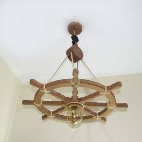 Lustre luminária pendente 65cm leme de navio rústico 1b