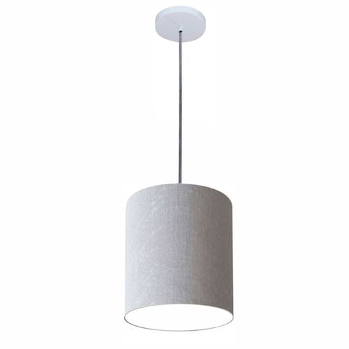 Lustre Luminária Pendente Vivare Free Lux PE-4102BR Cúpula em Tecido 13x30cm - Cor: Rustico-cinza | Cor da Canopla: Canopla branca e fio cristal