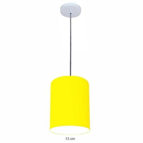Lustre Luminária Pendente Vivare Free Lux Pe-4103br Cúpula Em Tecido 15x20cm Amarelo Canopla Branca E Fio Cristal