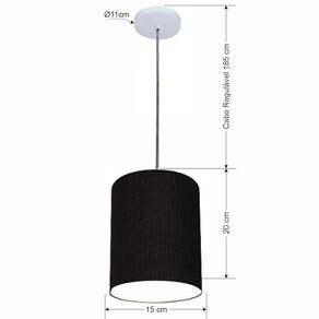 Lustre Luminária Pendente Vivare Free Lux Pe-4103br Cúpula Em Tecido 15x20cm Preta Canopla Branca E Fio Cristal