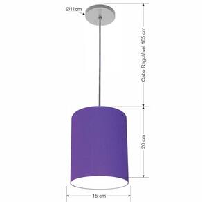 Lustre Luminária Pendente Vivare Free Lux Pe-4103cz Cúpula Em Tecido 15x20cm Roxo Canopla Cinza E Fio Cristal