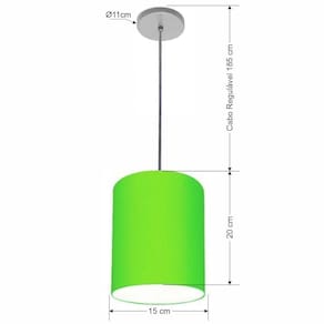 Lustre Luminária Pendente Vivare Free Lux Pe-4103cz Cúpula Em Tecido 15x20cm Verde-limão Canopla Cinza E Fio Cristal