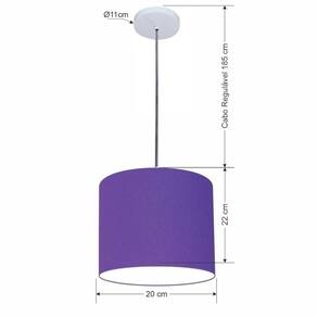 Lustre Luminária Pendente Vivare Free Lux Pe-4105br Cúpula Em Tecido 20x22cm Roxo Canopla Branca E Fio Cristal