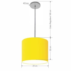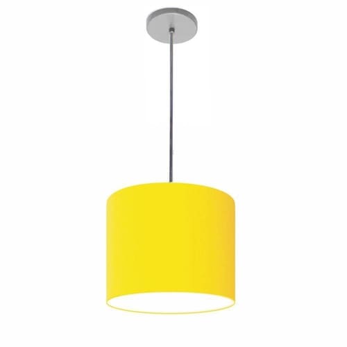 Lustre Luminária Pendente Vivare Free Lux Pe-4105cz Cúpula Em Tecido 20x22cm Amarelo Canopla Cinza E Fio Cristal