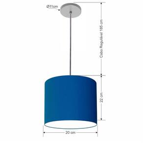 Lustre Luminária Pendente Vivare Free Lux PE-4105CZ Cúpula em Tecido 20x22cm - Cor: Azul-marinho | Cor da Canopla: Canopla cinza e fio cristal