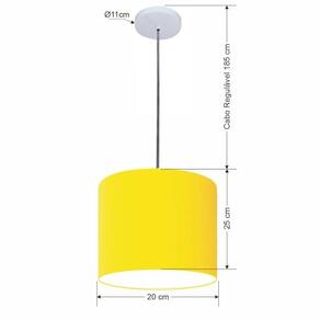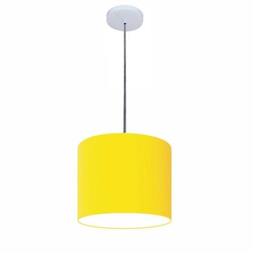 Lustre Luminária Pendente Vivare Free Lux Pe-4106br Cúpula Em Tecido 20x25cm Amarelo Canopla Branca E Fio Cristal