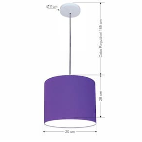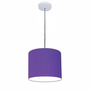 Lustre Luminária Pendente Vivare Free Lux PE-4106BR Cúpula em Tecido 20x25cm - Cor: Roxo | Cor da Canopla: Canopla branca e fio cristal