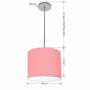 Lustre Luminária Pendente Vivare Free Lux Pe-4106cz Cúpula Em Tecido 20x25cm Rosa-tela Canopla Cinza E Fio Cristal