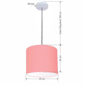 Lustre Luminária Pendente Vivare Free Lux PE-4107BR Cúpula em Tecido 25x20cm - Cor: Rosa-tela | Cor da Canopla: Canopla branca e fio cristal