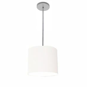 Lustre Luminária Pendente Vivare Free Lux Pe-4107cz Cúpula Em Tecido 25x20cm Branca Canopla Cinza E Fio Cristal