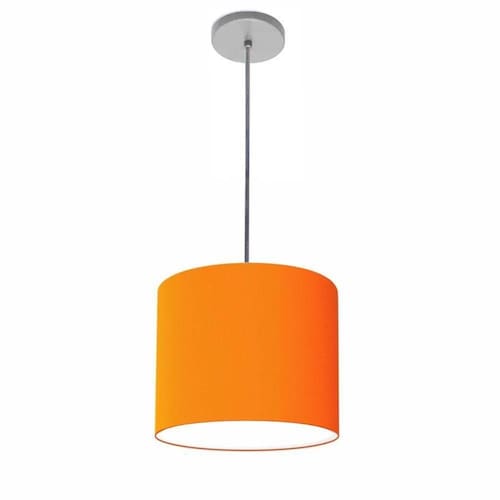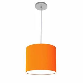 Lustre Luminária Pendente Vivare Free Lux Pe-4107cz Cúpula Em Tecido 25x20cm Laranja Canopla Cinza E Fio Cristal