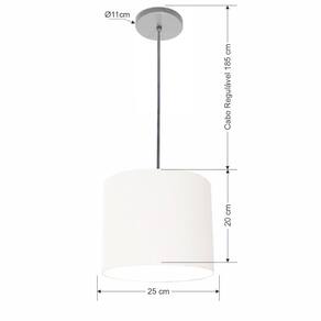 Lustre Luminária Pendente Vivare Free Lux PE-4107CZ Cúpula em Tecido 25x20cm - Cor: Branca | Cor da Canopla: Canopla cinza e fio cristal
