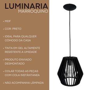 Não perca essa oportunidade de transformar o seu lar Adquira agora mesmo a sua luminária pendente Marroquino e desfrute de um ambiente mais bonito e acolhedor. Marca: Mmtb