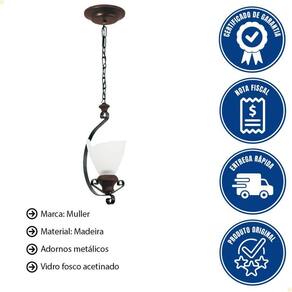 DESCRIÇÃO - Trabalhada em madeira proveniente de florestas de reflorestamento e dessa forma respeitando o meio ambiente. A linha rústica destaca os desenhos naturais e únicos das fibras de madeira. tornando os ambientes mais aconchegantes e confortáveis. - Os vidros empregados são produzidos pelo processo de sopro e utilizam apenas matéria prima virgem e sem compostos reciclados conferindo um melhor aproveitamento luminoso. Sem alteração da temperatura de cor emitida pela lâmpada. - Os adornos metálicos trabalhados artesanalmente recebem tratamento superficial e são pintados eletrostaticamente com tinta a pó de alta resistência. - A Linha Rústica da Muller é a certeza de produtos de qualidade e acabamento.