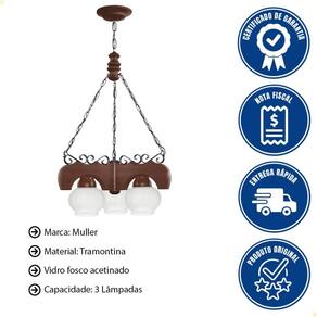 - Trabalhada em madeira proveniente de florestas de reflorestamento e dessa forma respeitando o meio ambiente. A linha rústica destaca os desenhos naturais e únicos das fibras de madeira. Tornando os ambientes mais aconchegantes e confortáveis. - Os vidros empregados são produzidos pelo processo de sopro e utilizam apenas matéria prima virgem e sem compostos reciclados conferindo um melhor aproveitamento luminoso. - Sem alteração da temperatura de cor emitida pela lâmpada. - Os adornos metálicos trabalhados artesanalmente recebem tratamento superficial e são pintados eletrostaticamente com tinta a pó de alta resistência. - A Linha Rústica da Muller é a certeza de produtos de qualidade e acabamento.
