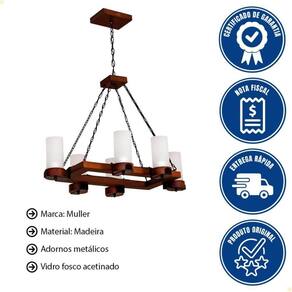 DESCRIÇÃO - Trabalhada em madeira proveniente de florestas de reflorestamento e dessa forma respeitando o meio ambiente, a linha rústica destaca os desenhos naturais e únicos das fibras de madeira, tornando os ambientes mais aconchegantes e confortáveis. - Os vidros empregados são produzidos pelo processo de sopro e utilizam apenas matéria prima virgem e sem compostos reciclados conferindo um melhor aproveitamento luminoso, sem alteração da temperatura de cor emitida pela lâmpada. - Os adornos metálicos trabalhados artesanalmente recebem tratamento superficial e são pintados eletrostaticamente com tinta em pó de alta resistência. - A Linha Rústica da Muller é a certeza de produtos de qualidade e acabamento.