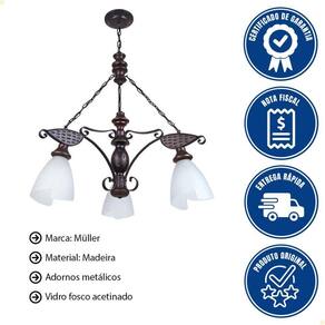 DESCRIÇÃO - Trabalhada em madeira proveniente de florestas de reflorestamento e dessa forma respeitando o meio ambiente. A linha rústica destaca os desenhos naturais e únicos das fibras de madeira. Tornando os ambientes mais aconchegantes e confortáveis. - Os vidros empregados são produzidos pelo processo de sopro e utilizam apenas matéria prima virgem e sem compostos reciclados conferindo um melhor aproveitamento luminoso. Sem alteração da temperatura de cor emitida pela lâmpada. - Os adornos metálicos trabalhados artesanalmente recebem tratamento superficial e são pintados eletrostaticamente com tinta a pó de alta resistência. - A Linha Rústica da Muller é a certeza de produtos de qualidade e acabamento.