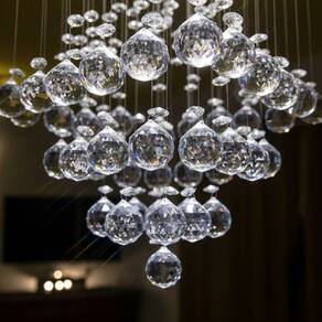 Brilho Intenso: O lustre possui 49 pêndulos, com 49 esferas de 30 mm e aproximadamente 300 castanhas de 14 mm de cristal legítimo (K9), que proporcionam um brilho incomparável.