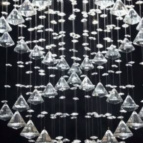Brilho Superior: Com 49 pêndulos e aproximadamente 400 castanhas de 14 mm de cristal legítimo K9, o lustre garante um brilho intenso e elegante.