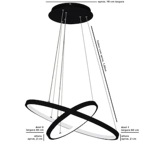 Lustre Pendente 2 Anéis Ring Branco Led Bivolt 60cm 3000K