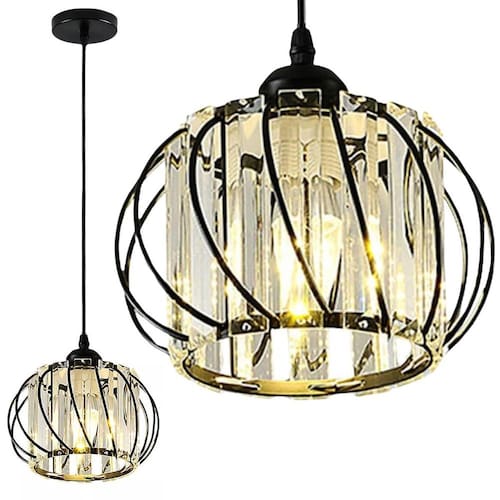 Lustre Pendente 20cm Cristal Metal Aros Luminária Suspensa Teto Gimpo KJDD-E-015-PRETO