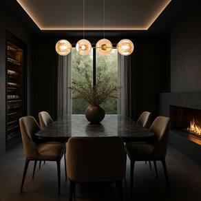 1 x Luminária Lustre Pendente 4 Globos Gimpo KJDD-E-544-GOLD-Amber-4.
