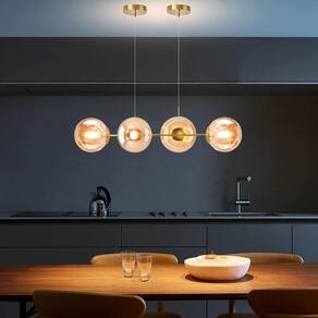 1 x Luminária Lustre Pendente 4 Globos Gimpo KJDD-E-544-GOLD-Amber-4.