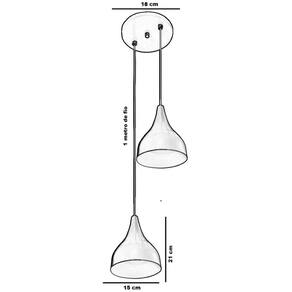 -Alimentação: Bivolt -Tipo de lâmpada: 2 x E-27. (não inclusas) -Peso Aprox. com embalagem: 1 kg -Dimensões aprox. do produto 15x21cm (Gota) -1 Metro de Fio PP -Soquete de Porcelana -Canopla de Fixação de 18cm de diâmetro.