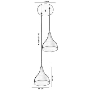 -Alimentação: Bivolt -Tipo de lâmpada: 2 x E-27. (não inclusas) -Peso Aprox. com embalagem: 1 kg -Dimensões aprox. do produto 15x21cm (Gota) -1 Metro de Fio PP -Soquete de Porcelana -Canopla de Fixação de 18cm de diâmetro.