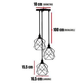 Lustre Pendente Aramado Triplo Cálice Cabo Regulável Luminária Agp Ilumini Retro - Cor: Cobre Rose Gold/Preto