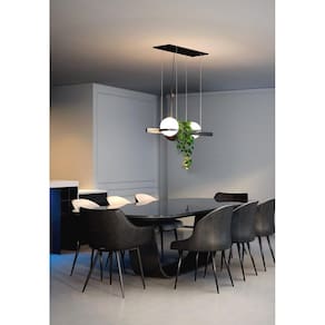 Lustre Pendente Arquimedes Delta LED Bivolt - PIX IluminaçãoO Lustre Pendente Arquimedes Delta é a escolha ideal para quem busca um design inovador, moderno e funcional. Produzido com ferro de alta qualidade e acabamento em pintura preta fosca, este pendente combina sofisticação com praticidade, oferecendo uma iluminação de alto desempenho.Material: Ferro com pintura preta fosca e vidro leitosoIluminação: 27W, fluxo luminoso de 2205 lm LED integrado Índice de Reprodução de Cor IRC : 80Temperatura de Cor: 3000K luz quente Grau de Proteção: IP20 uso interno Alimentação: BivoltDimensões:Hastes: 24 cm de larguraCanopla: 4,5 cm de alturaComprimento da estrutura central: 120 cmLargura da estrutura central: 2 cmComprimento do fio de aço: 4 metrosCom duas esperas de vidro leitoso 22cm , spot direcionável e estrutura central em alumínio, o Lustre Pendente Arquimedes Delta oferece versatilidade e eficiência. Além disso, conta com um espaço dedicado para vegetação artificial, que acompanha o produto, trazendo um toque de natureza ao ambiente. Ideal para quem deseja iluminar e decorar com estilo, este pendente é perfeito para áreas internas como salas de jantar, escritórios e halls de entrada. Marca: Pix Iluminação