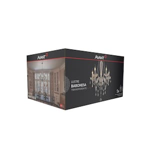 - Marca: Avant; - Base: E14; - Cores: Transparente; - Materiais: Aço, Vidro; - Hastes: 5; - Potência Máxima: 5X15W; - Lâmpada Indicada: Vela LED, Vela Retrô; - Modelo: 785050072; - Cabo ajustável em até 1,5 metro; - Canopla em aço; - Lâmpada indicada: Vela e Vela chama (E14). (Lâmpadas não inclusas); - Garantia: 12 meses junto ao fabricante.