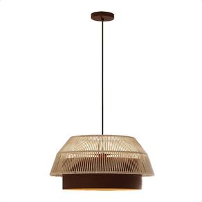 Lustre Pendente Blumenau Gaia Macramê 50cm E27 Bivolt Marrom Gold com Bege
