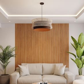 Lustre Pendente Blumenau Gaia Macramê 60cm E27 Bivolt Marrom Gold com Bege