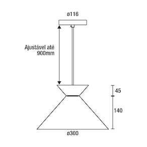 Especificações gerais do produto:Voltagem: BivoltDimensões AxLxP mm : 185x300x300Material: AlumínioGarantia: 1 ano junto ao fabricanteComprimento dos Cabos: Cabo ajustável, máximo 90 cmLâmpada Inclusa: NãoLocal de Uso: InternoNúmero de Lâmpadas: 1Potência Máxima por soquete : 20WSoquete: E27Grau de Proteção: IP 20Frequência: 50/60 HzLâmpada Indicada: A60O que acompanha o produto:- 1 Lustre Pendente