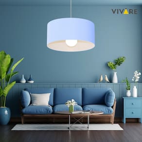 Lustre Pendente Cilíndrico 4052 Cúpula Tecido 50x21cm Azul Bebê