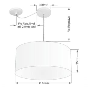 Pendente Com Desvio de Centro Indicado para decoração área interna, como mesas, sala de estar, sala de jantar, suíte, quartos, corredor, hall, mezanino, escadas, churrasqueira, lareira, área de circulação, lojas, comércios, restaurante, varanda, balcão.DimensãoCúpula em Tecido: 50x25cm