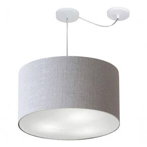 Lustre Pendente Cilíndrico Com Desvio De Centro Vivare Md-4239 Cúpula Em Tecido 45x30cm - Bivolt Rustico-cinza 127/220v