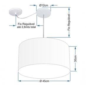Lustre Pendente Cilíndrico Com Desvio de Centro Vivare Md-4239 Cúpula em Tecido 45x30cm