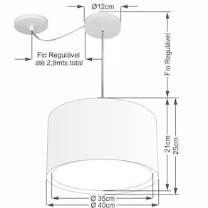 Lustre Pendente Cilíndrico Com Desvio de Centro Vivare Md-4305 Cúpula em Tecido 40x25cm