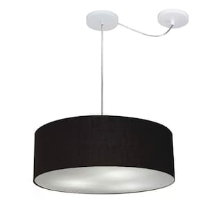 Lustre Pendente Cilíndrico Com Desvio Md-4222 Cúpula Tecido 45x15cm Preto