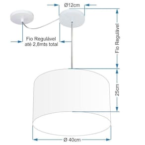 Pendente Com Desvio de Centro Indicado para decoração área interna, como mesas, sala de estar, sala de jantar, suite, quartos, corredor, hall, mezanino, escadas, churrasqueira, lareira, área de circulação, lojas, comércios, restaurante, varanda, balcão.DimensãoCúpula em Tecido: 40x25cm