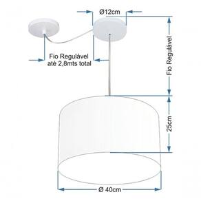 Pendente Com Desvio de Centro Indicado para decoração área interna, como mesas, sala de estar, sala de jantar, suite, quartos, corredor, hall, mezanino, escadas, churrasqueira, lareira, área de circulação, lojas, comércios, restaurante, varanda, balcão.DimensãoCúpula em Tecido: 40x25cm